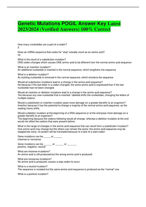 Free PDF GENETIC MUTATION POGIL ANSWERS Epub Library Genesis